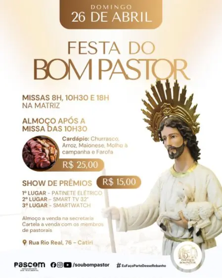 Sábado: Missa às 08:00h (4° sábado do mês, Missa da Mãe Rainha às 08:00hs.)